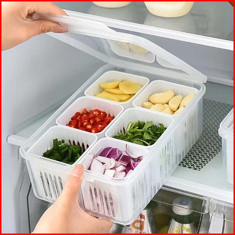 6 Sekat Kotak Penyimpanan Bumbu Dapur Wadah Cabai Bawang Kotak Bumbu Dapur Dengan Tirisan Dan Sekat Kotak Saringan Wadah