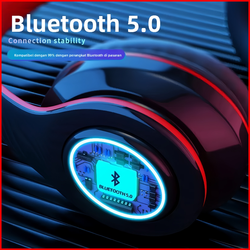 Rccor Headset Bluetooth 5.0 Led Bercahaya - Suara Jernih Hi-fi Desain Sporty Nyaman Seharian