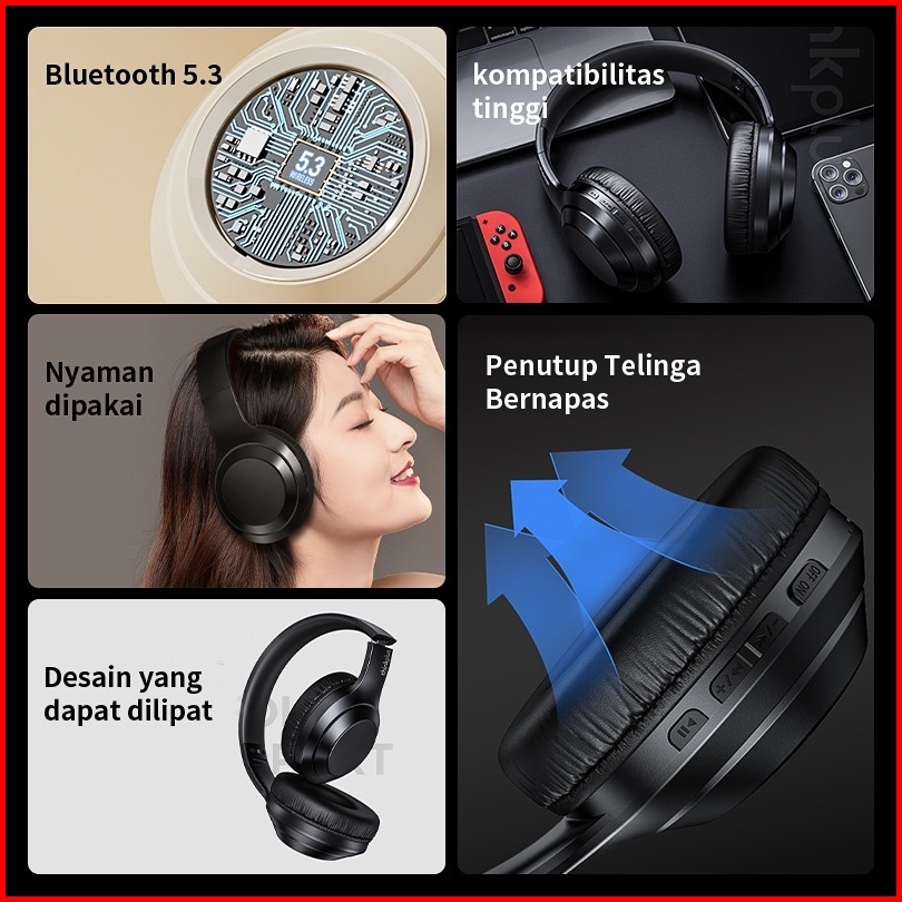 M6 Dipasang Di Kepala Headset Bluetooth Headset Silikon Yang Dapat Dilipat Mendukung Plug And Play Headset Gaming Nirkab