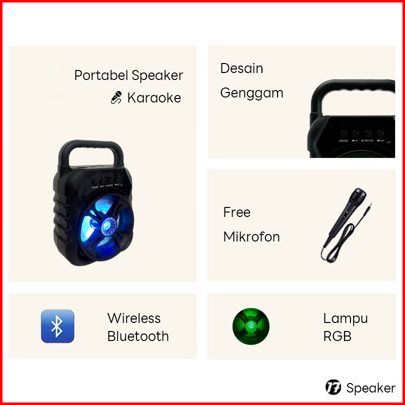 Speaker Bluetooth Portable Mini Speaker Karaoke Led 3.5 Super Bass Free Microphone Murah
