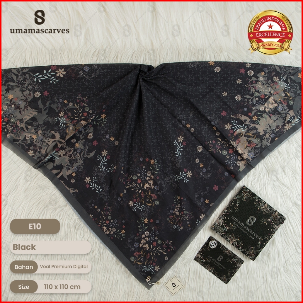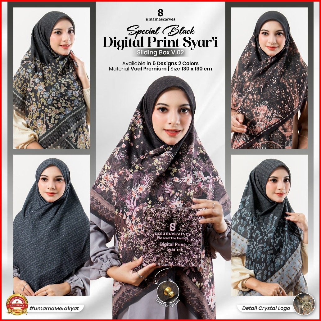 Umamascarves - Kerudung Motif Box Digital Print Khusus Hitam