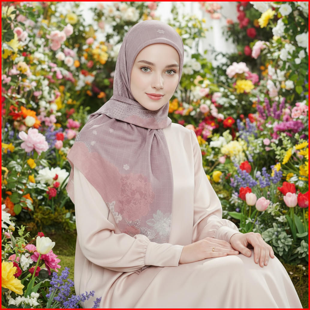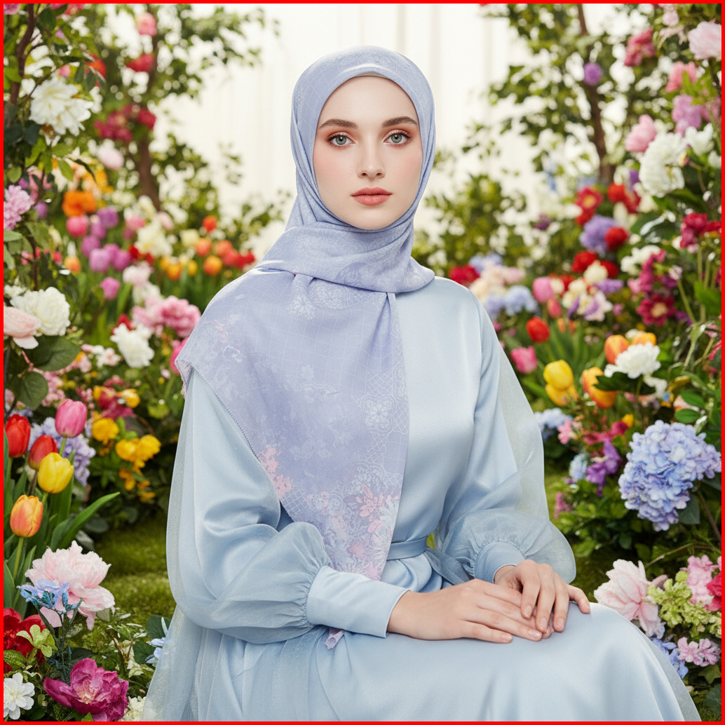 Hijab Segi Empat Voal Premium Shafira Percy Printed Scarf Polysupun Laser Cut Box Eksklusif