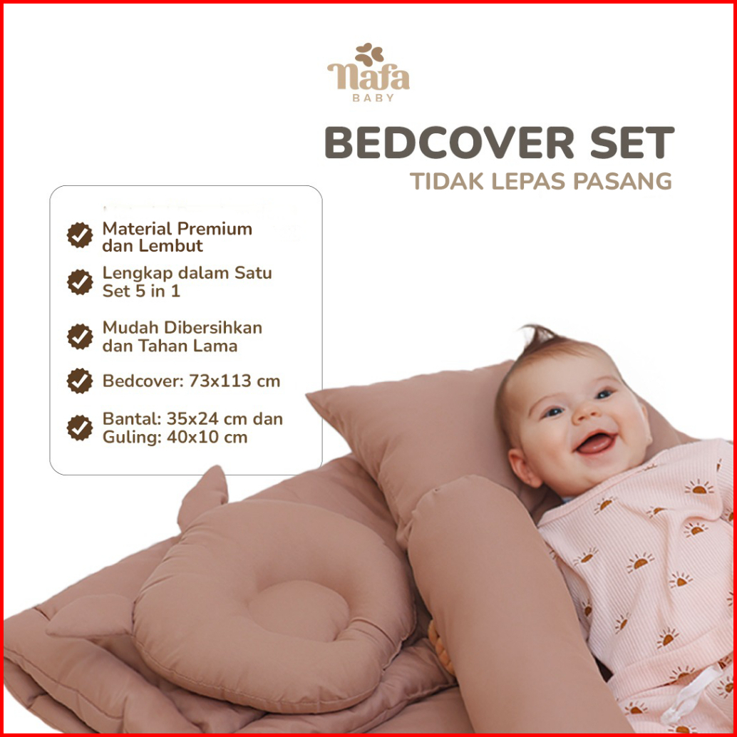 Nafa Baby - Bedcover Set Bayi 5in1 Selimut Alas Tidur Bantal Guling Bayi Baru Lahir Premium Free Tas Penyimpanan
