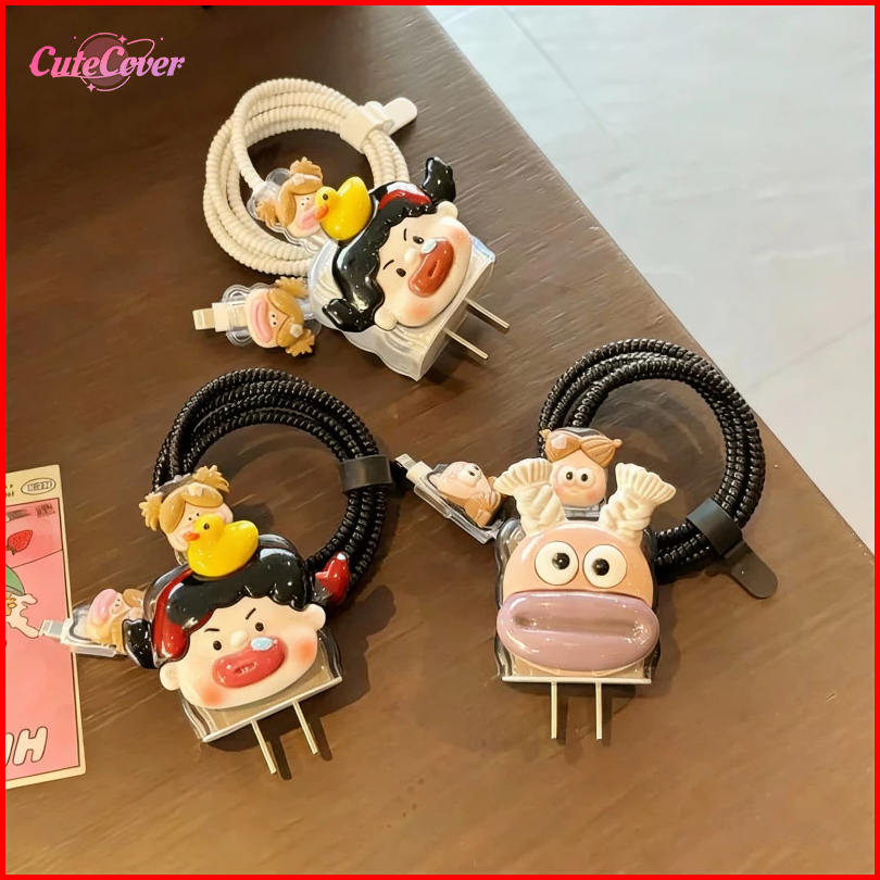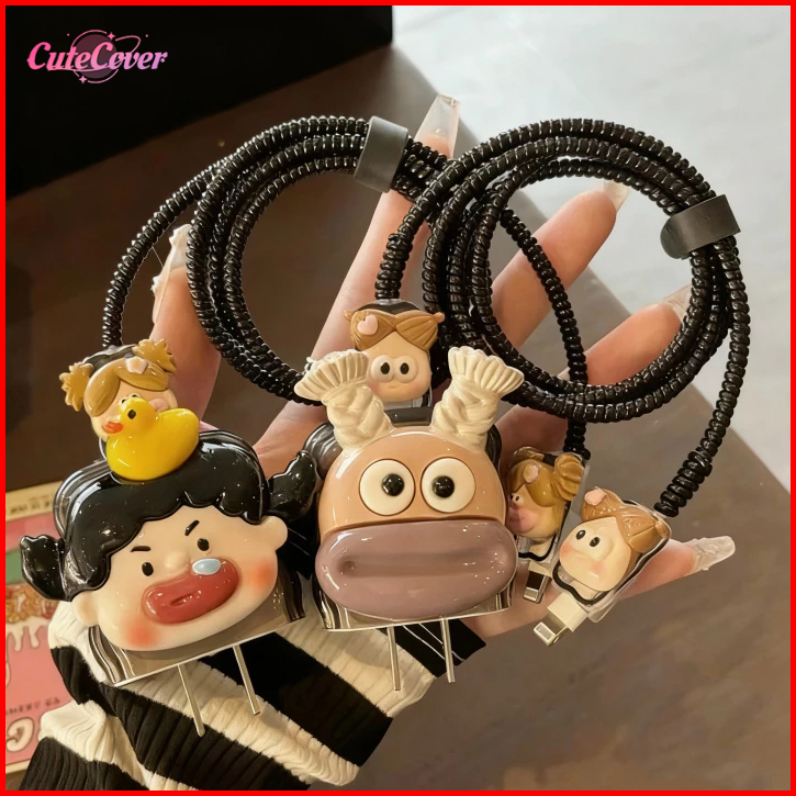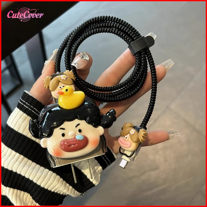 Cutecover Set Pelindung Kabel Charger Iphone Lucu Unik Motif Komik Anti Putus Perlindungan Aman Bebek Untuk Charger Ipho