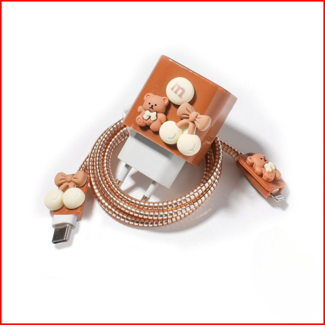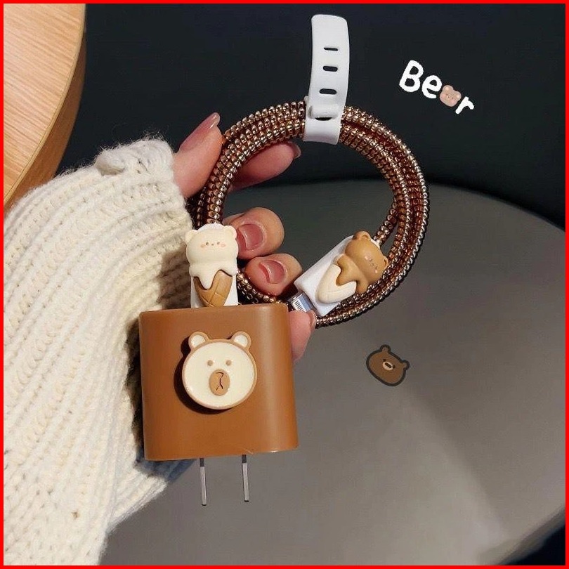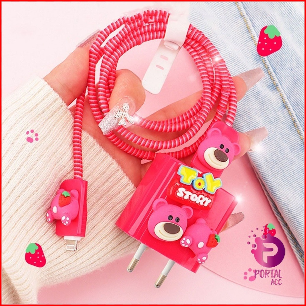 1set Cover Case Pelindung Kabel 3 3 Cable Data Charger Bahan Silikon Motif Kartun Untuk Iph Ne 18w 20w Sm135