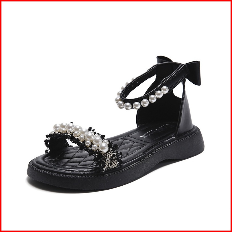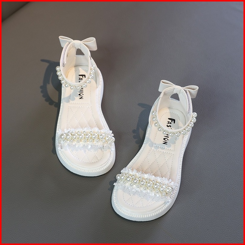 Babyfit Size 23-37 Sepatu Tali Mutiara Renda Chanl Sendal Musim Panas Anak Perempuan Alas Karet Import Ws-0706