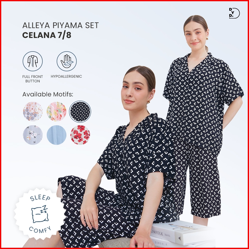 Dyd Label Alleya Piyama Premium Setelan Celana 7 8 Bahan Rayon Premium Busui Friendly Full Front Button All Size Sleepwe