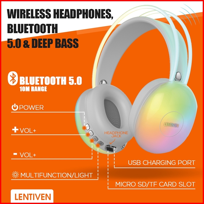 Lentiven Headphone Bluetooth Wireless Noise Cancelling With Microphone Headset Earphone Bt500 Garansi 1 Tahun