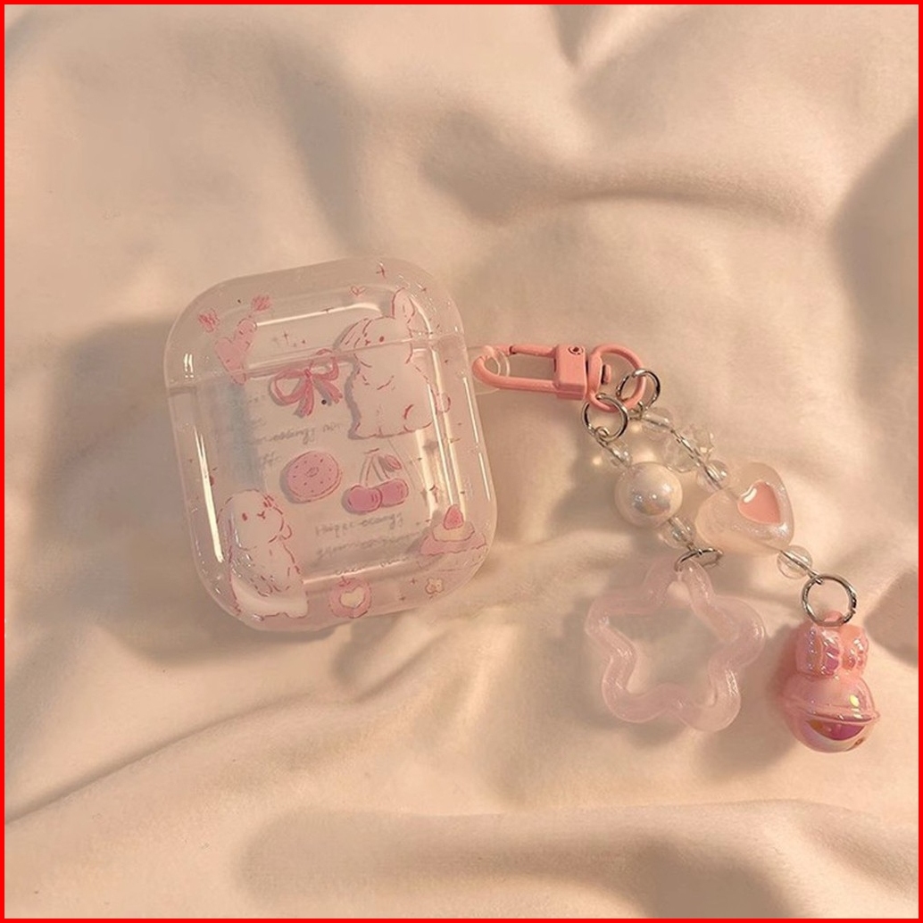 Casing For Airpods 4 Pro 3 2 1 Sweet Pink Bowknot Girly Fresh Rabbit Bunny Pattern Tpu Shockproof Earphone Case With Ant