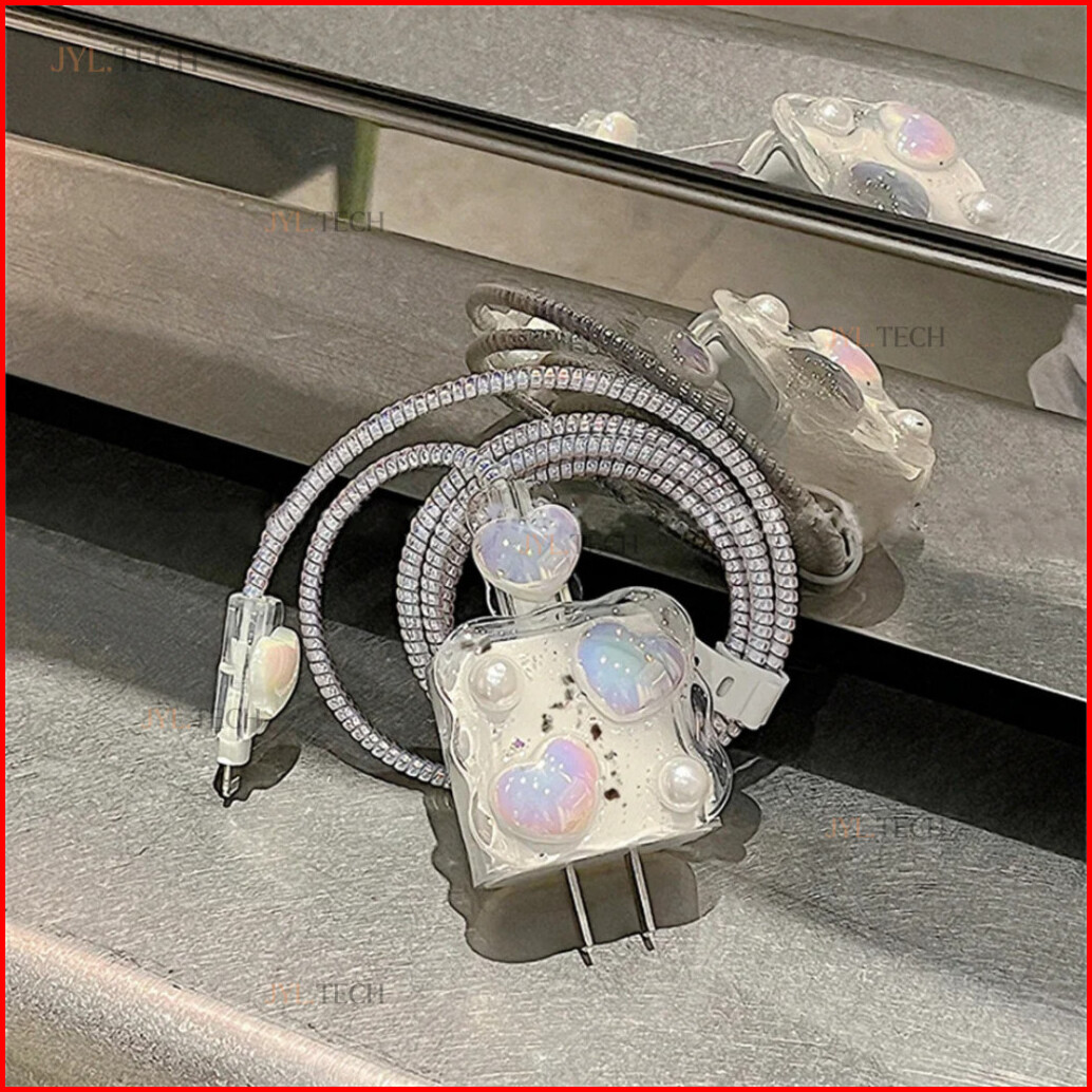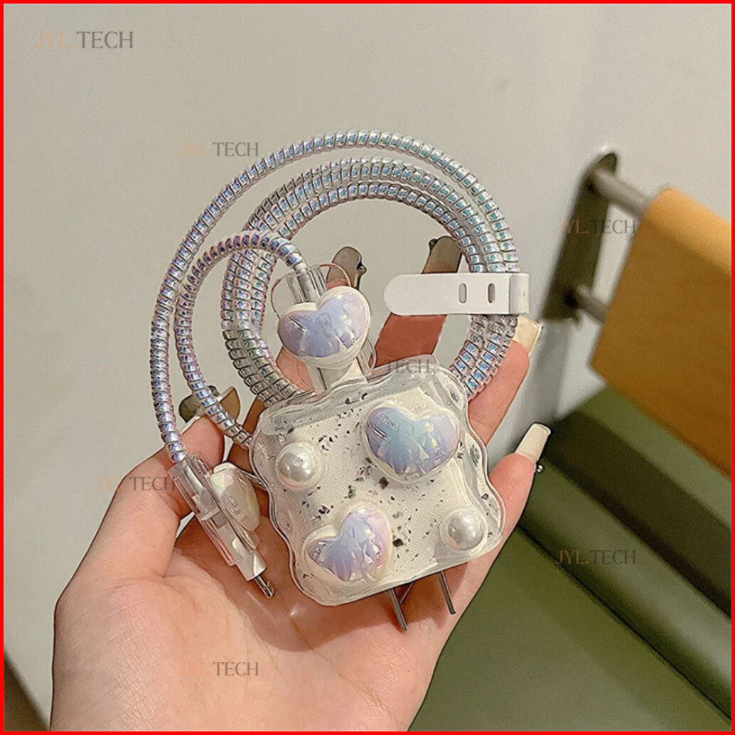 Pelindung Charger Kabel Compatible For Iphone Motif Hologram 3d 18w-20w Pelindung Adapter Paket Cover 5in1