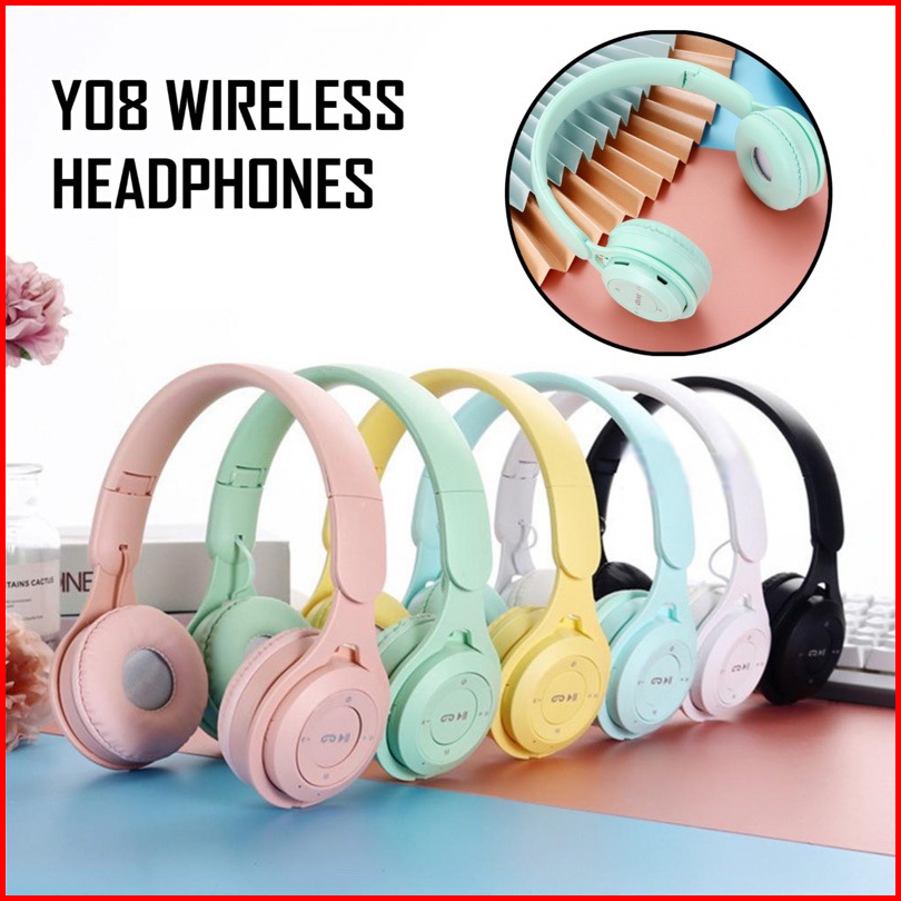 Headphone Bluetooth Headset Wireless Macaron Y08 Stereo Headphone