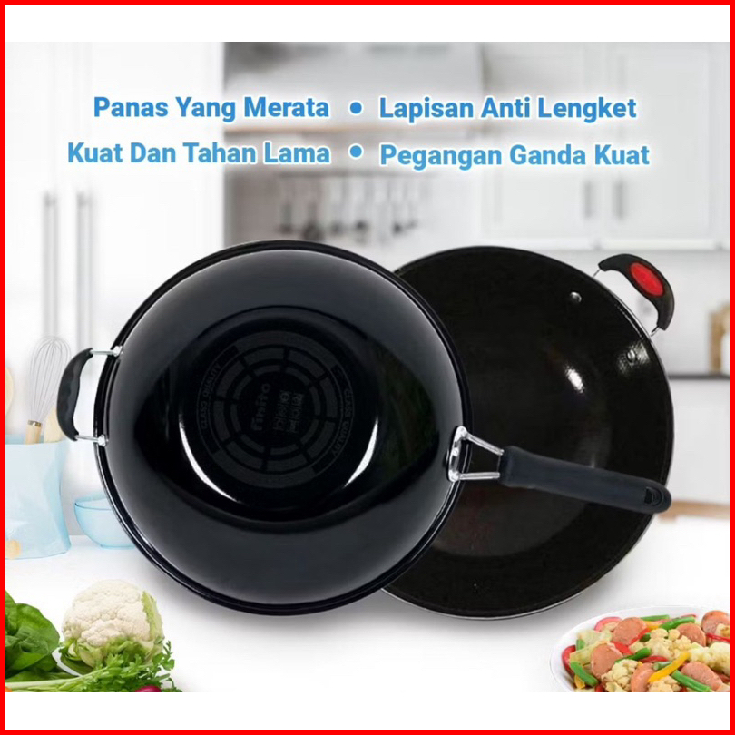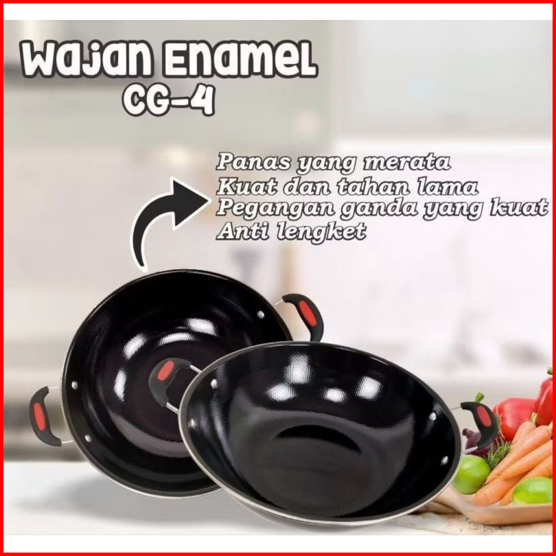 Wajan Enamel 34 Cm Kuping Dan Wajan Ganggang Diameter 34 Cm Kualitas Terbaik Anti Lengket