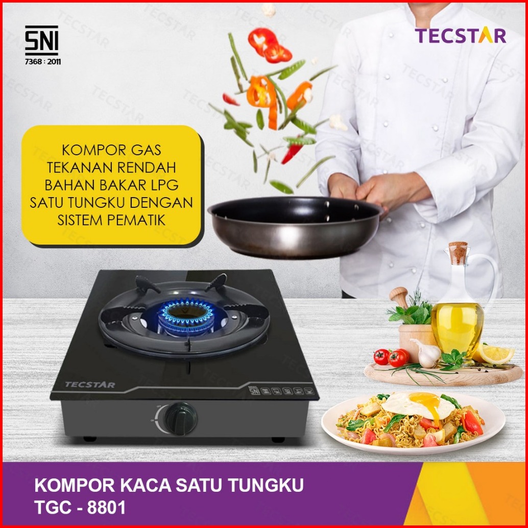 Tecstar Kompor Kaca Tempered Tgc-8801 Satu Tungku Actionmatic Sni Burner Kuat Anti-slip Hemat