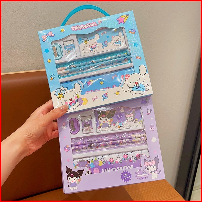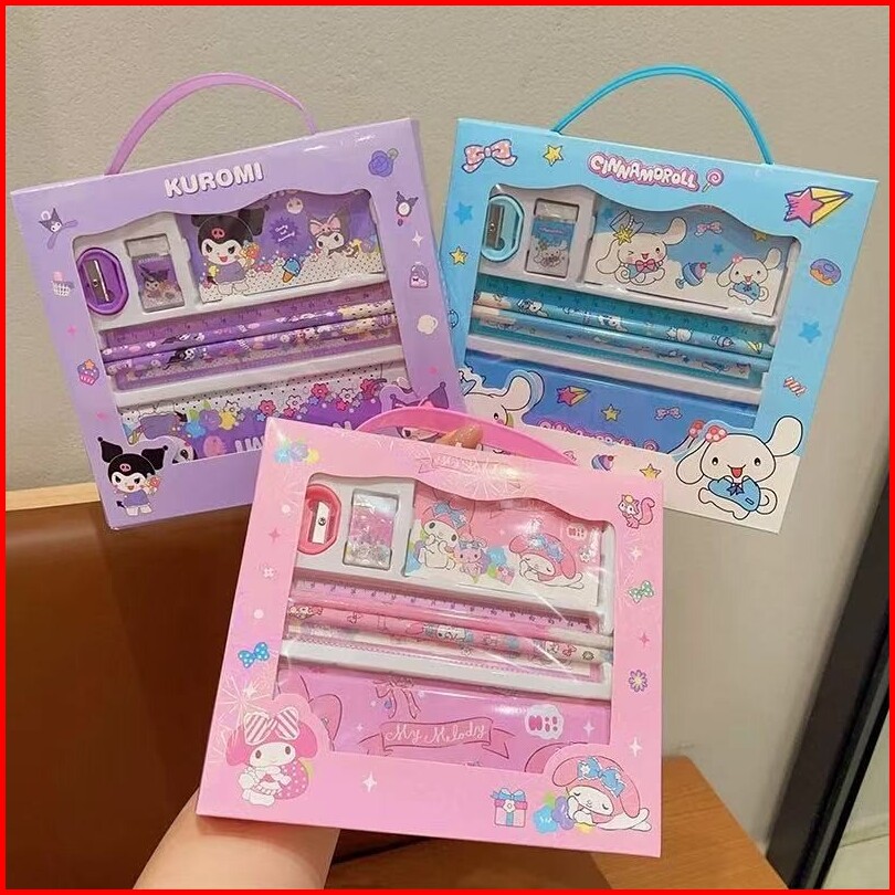 Alat Tulis Anak Kotak Pensil Set Kuromi Cinnamoroll Spiderman Kotak Pensil 7in1 Untuk Paud Anak
