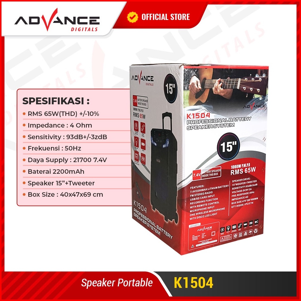 Advance K1504 Speaker Meeting Bluetooth Salon Aktif 15 Inch Gratis 2 Mic Karoke