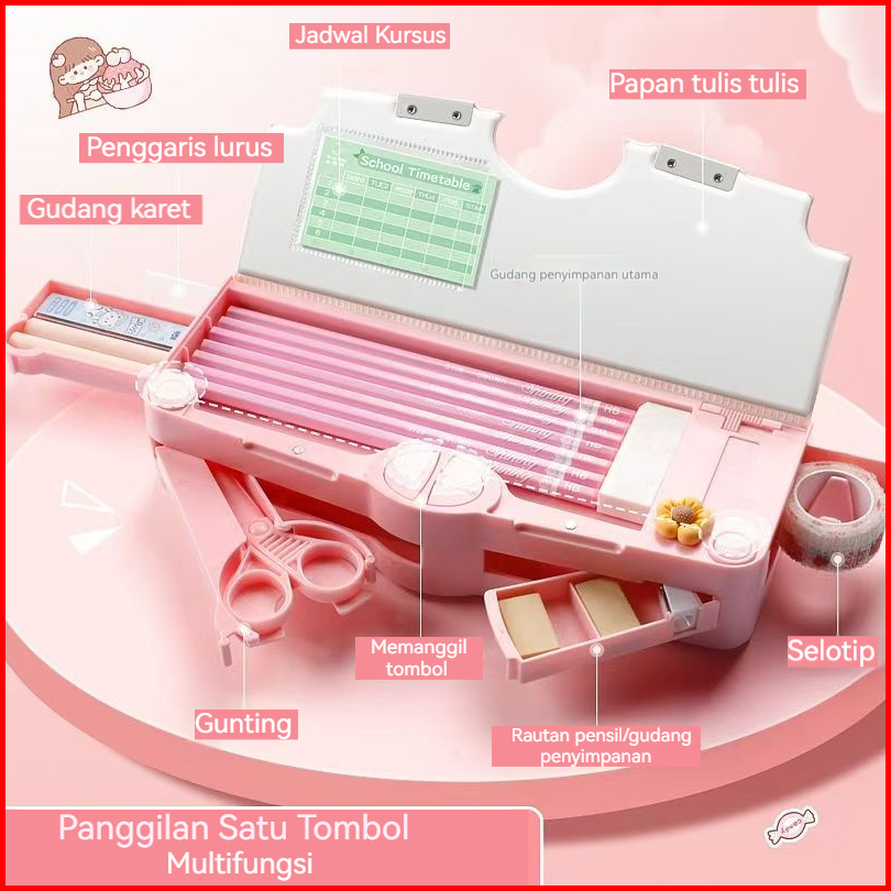 Kotak Pensil Multifungsi Untuk Anak Laki-laki Dan Perempuan Kotak Pensil Otomatis Kotak Pensil Kata Sandi Dua Lapis Berk