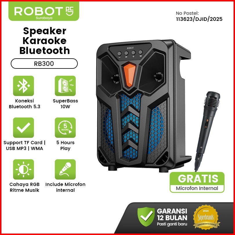 Robot Speaker Karaoke Speaker Mic Bluetooth Super Bass Portable Ringan Tipe Rb300 Bluetooth 5.1 Cahaya Rgb Light Daya 10