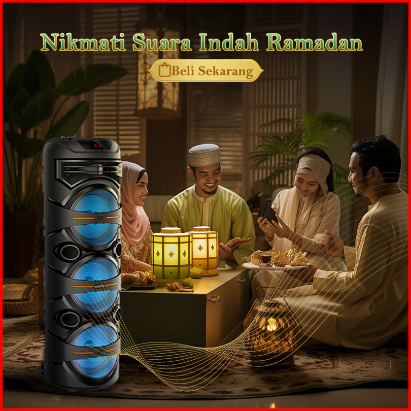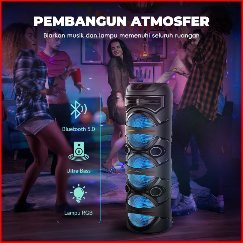 Maiket Speaker Bluetooth Karaoke 8 Inch 3 Portabel 2 Mic Bass Besar Wireless Subwoofer Zqs8333
