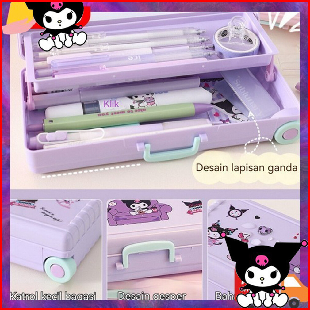 Sanrio Seri Large Capacity Anime Kartun Pensil Kasus Troli Kotak School Supplies Lucu Alat Tulis Kuromi Anak-anak Pensil