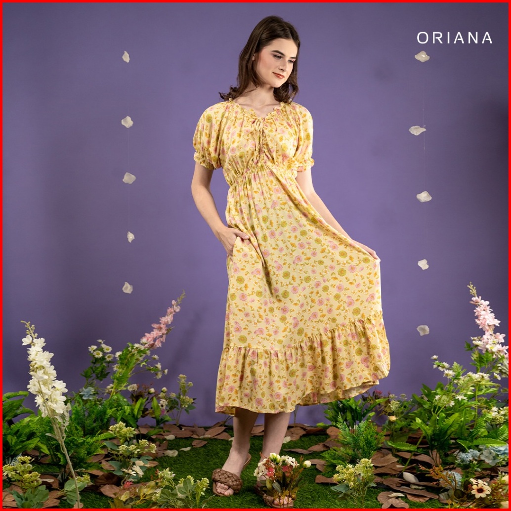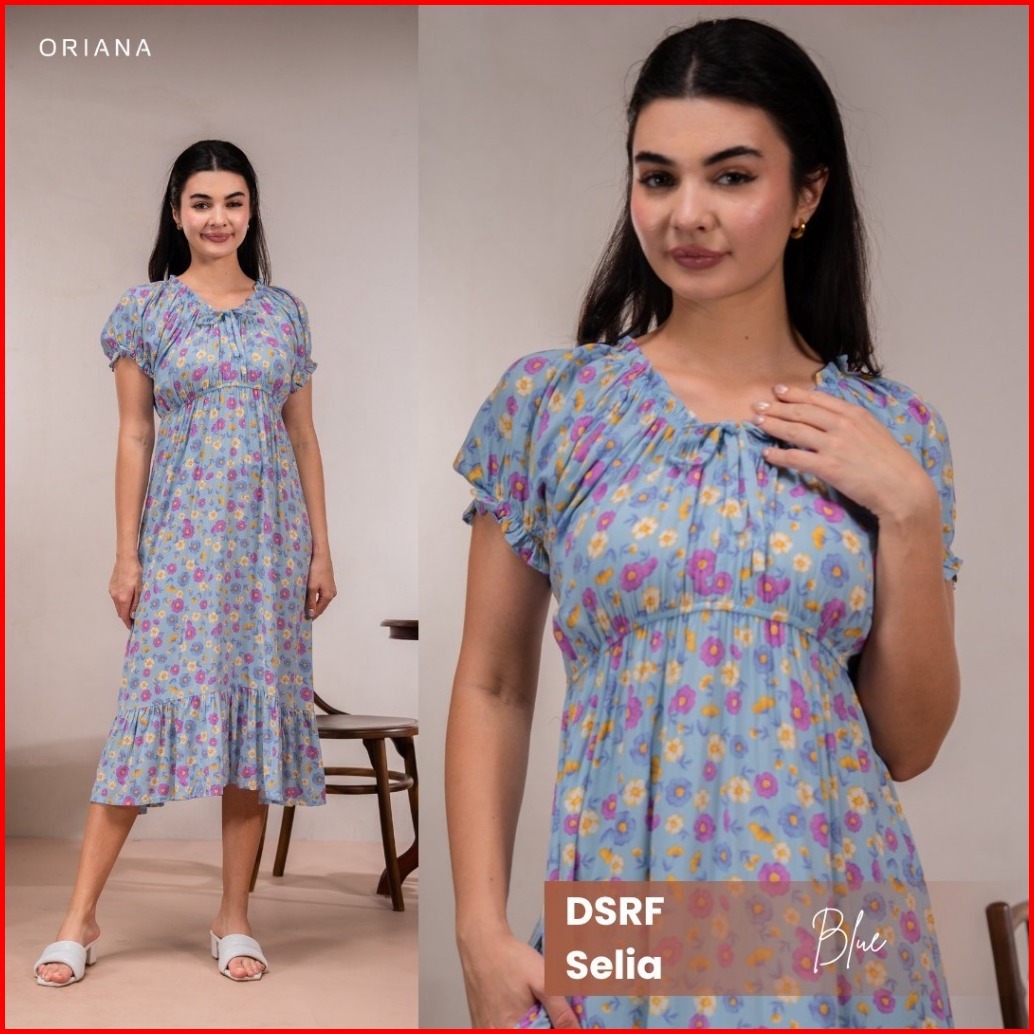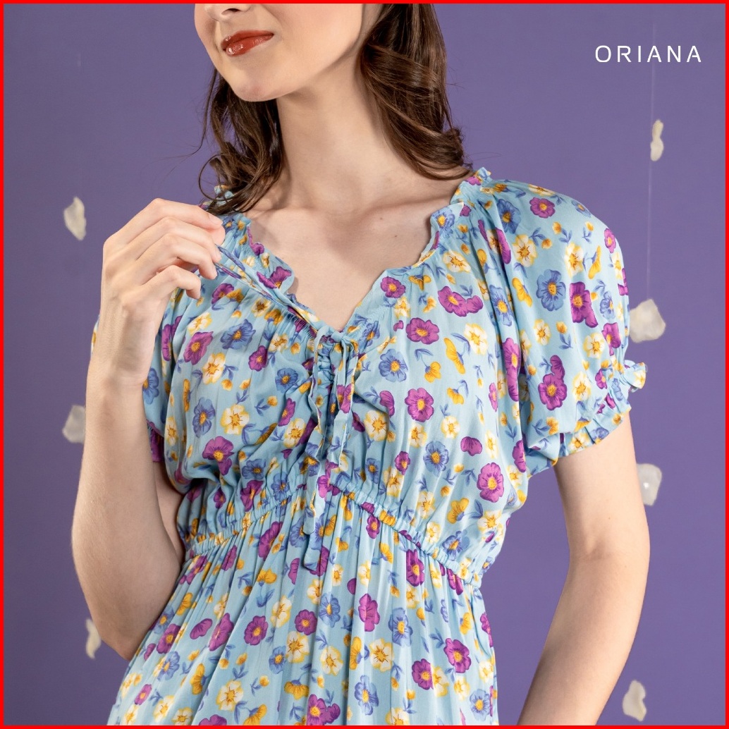Oriana Homewear Maxi Dress Ruffle Selia Series Dress Serut Bali