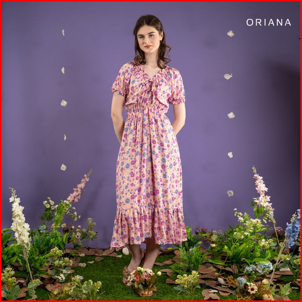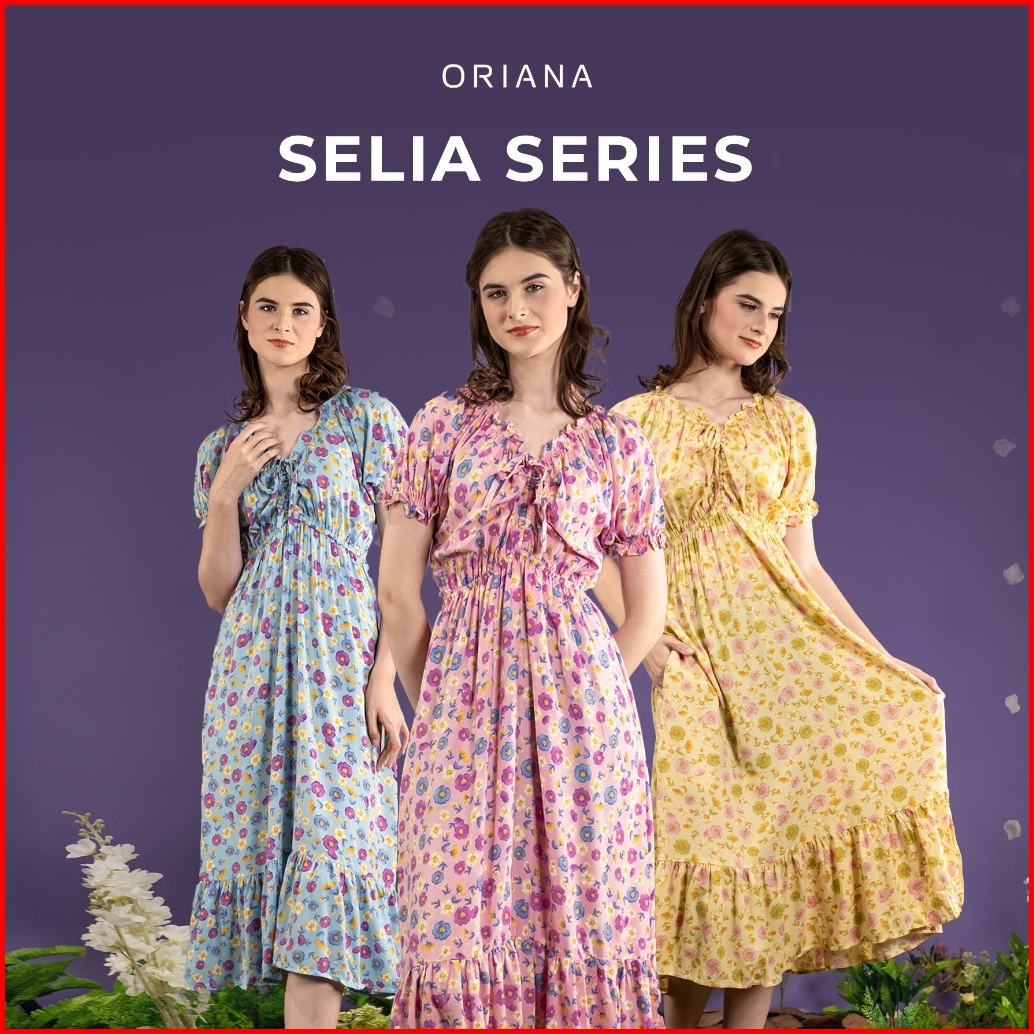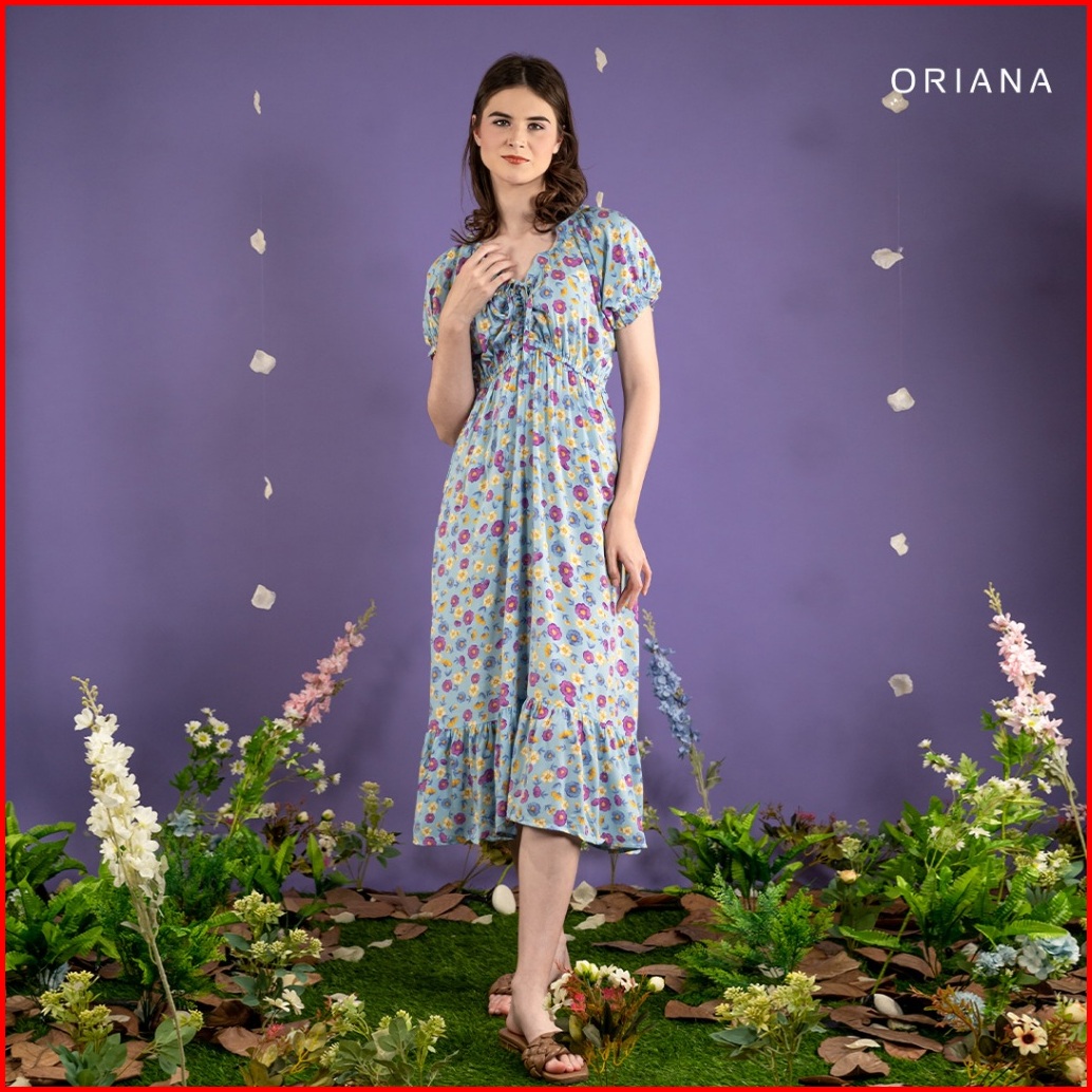 Oriana Homewear Maxi Dress Ruffle Selia Series Dress Serut Bali