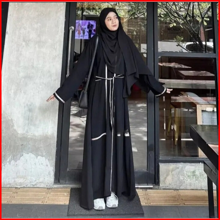 Maxi Dress Abaya Model Strip Monochrome Warna Pastel Size Xs M L Xl Xxl