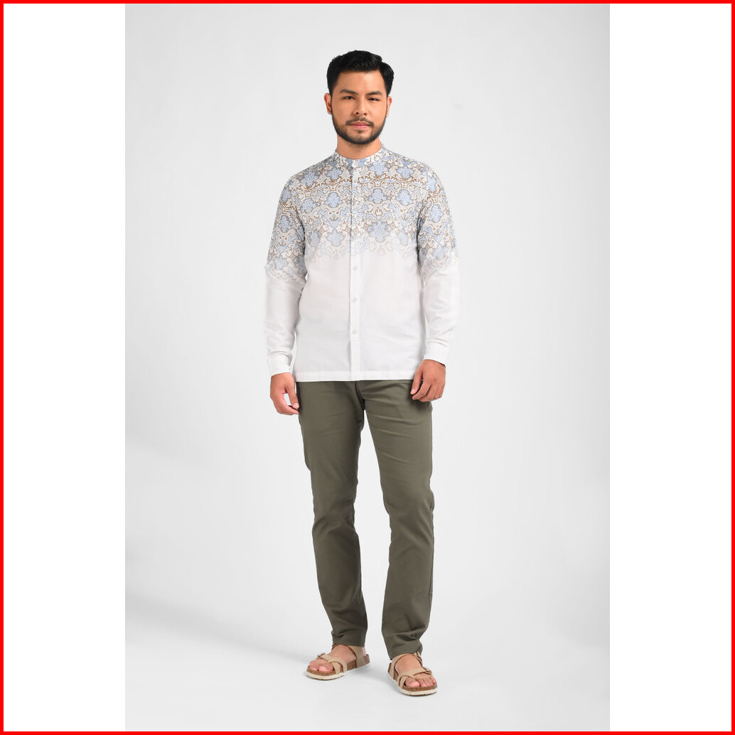 Manzone Kemeja Shanghai Lengan Panjang Pria Farish - Blue White
