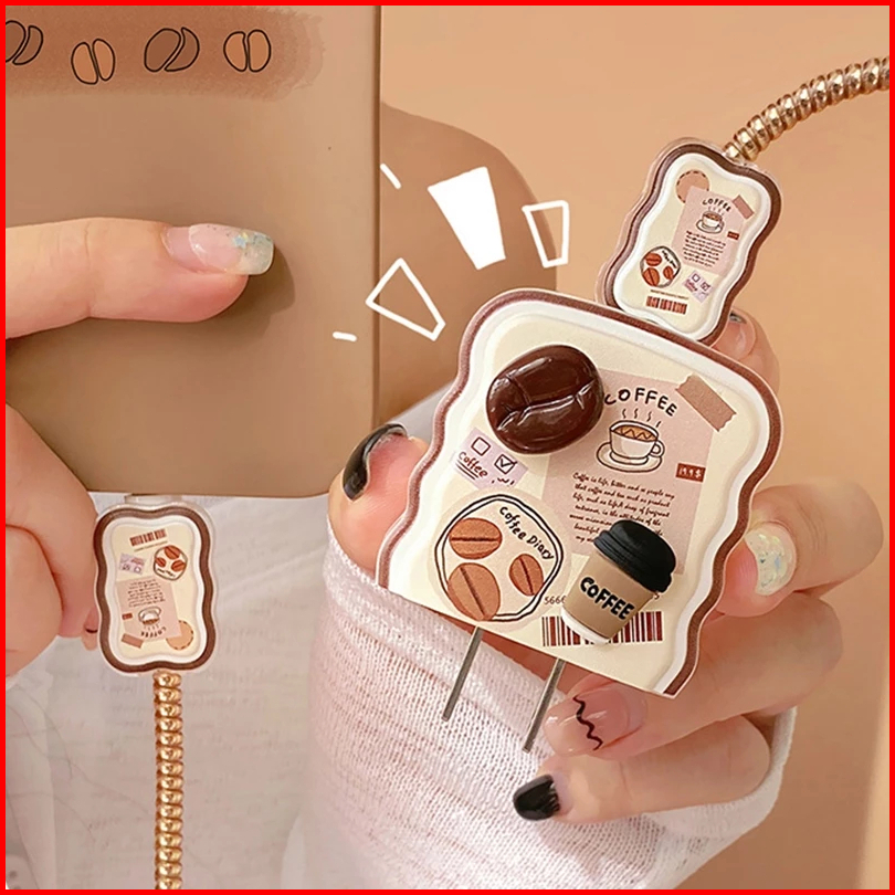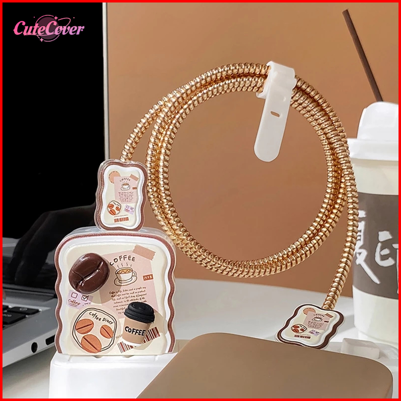 Cutecover Pelindung Kabel Charger Iphone Kopi Kartun Yang Lucu Pengisi Pelindung Kabel Data Telepon Kasing Pelindung Coc