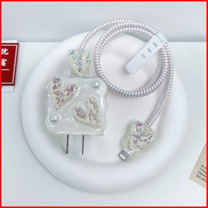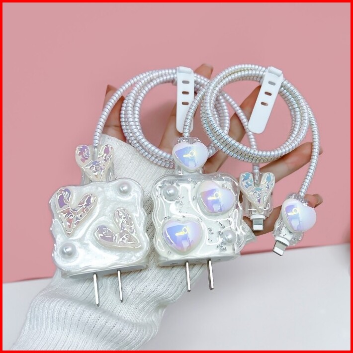 Cable Set Protector Pelindung Charger Iphone Kabel Kepala Charger Android 18w 20w Motif Kristal Bening Adaptor