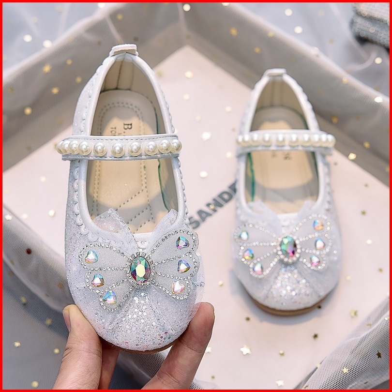Free Crown Box Sandal Sepatu Anak Perempuan Pesta Elegan Size26 - 33 Natal Party Shoes Glitter Bling Bling