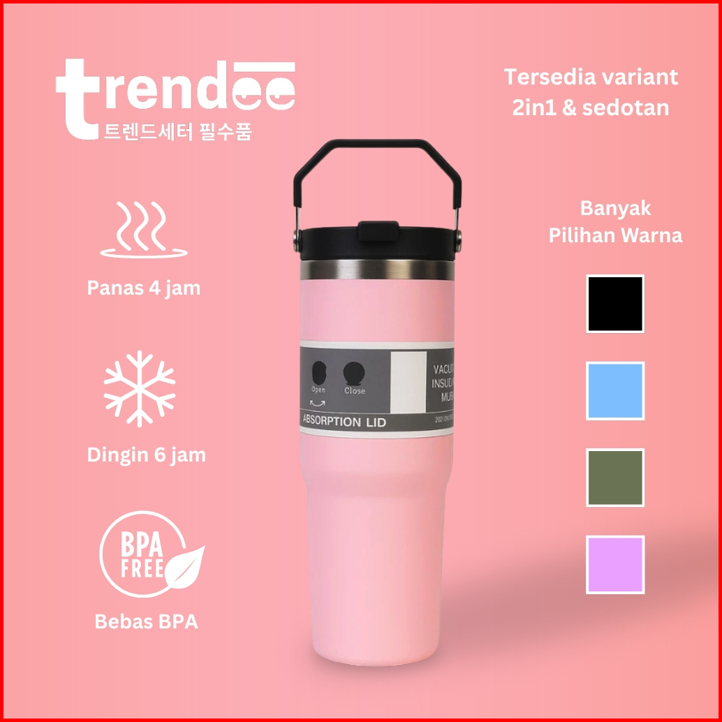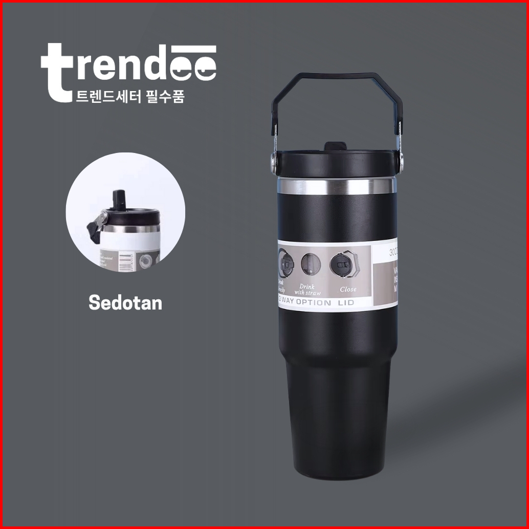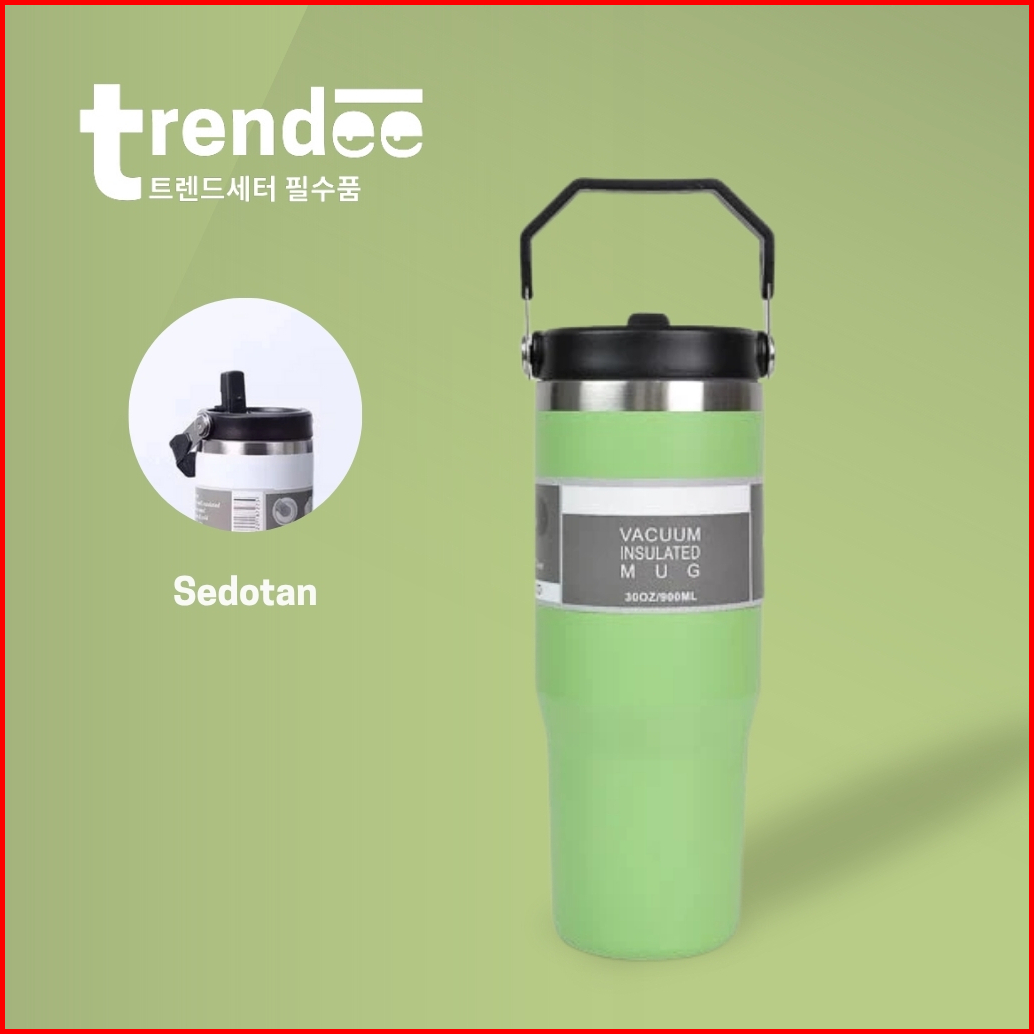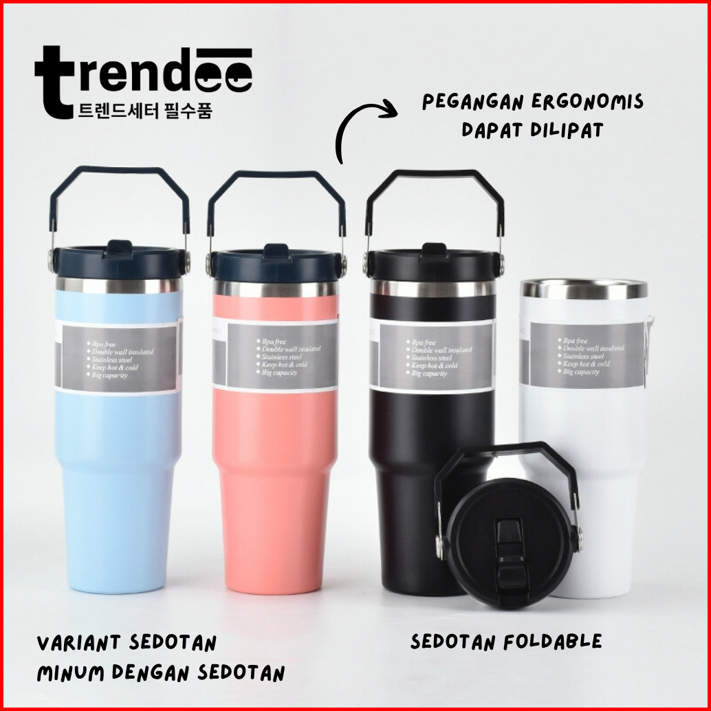Trendee Termos Stainless 900ml Botol Tumbler Sedotan Handle Portable Premium Tahan Panas Dingin