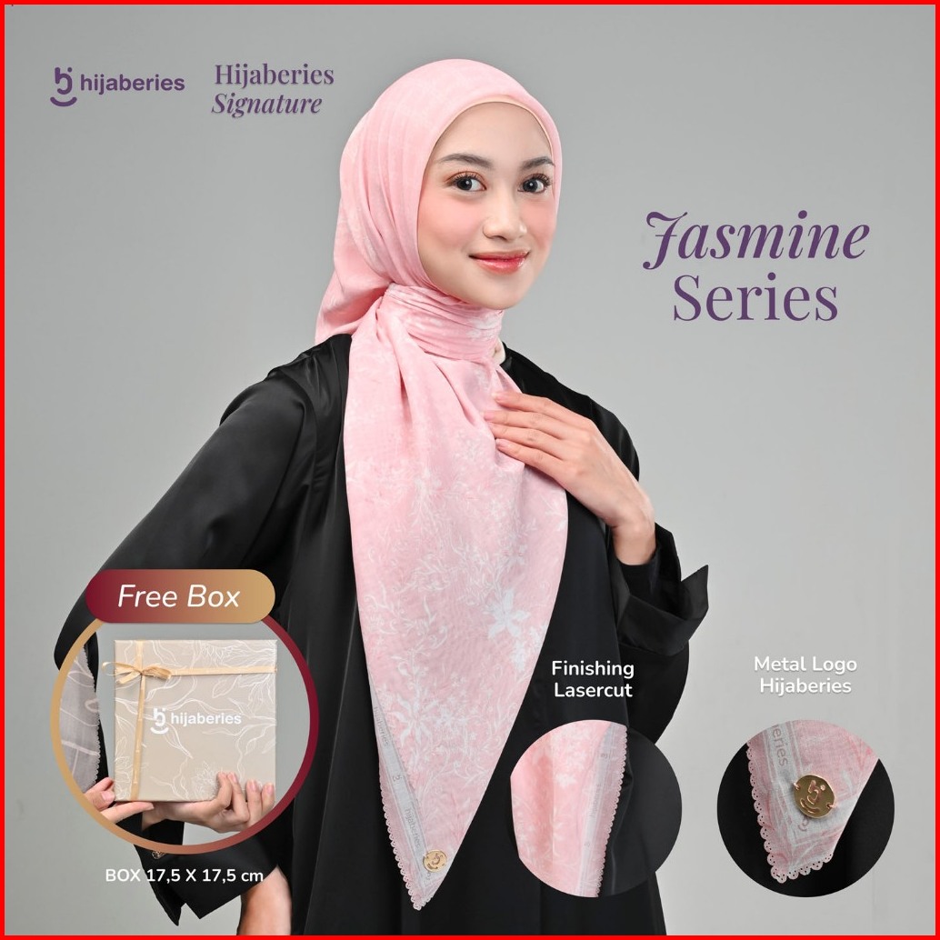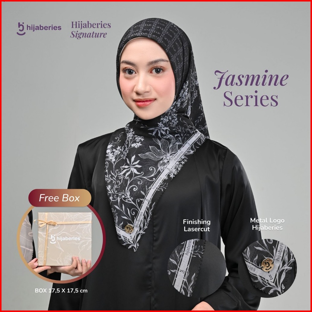 Hijaberies Signature Jasmine Series - Hijab Segiempat Motif With Exclusive Box