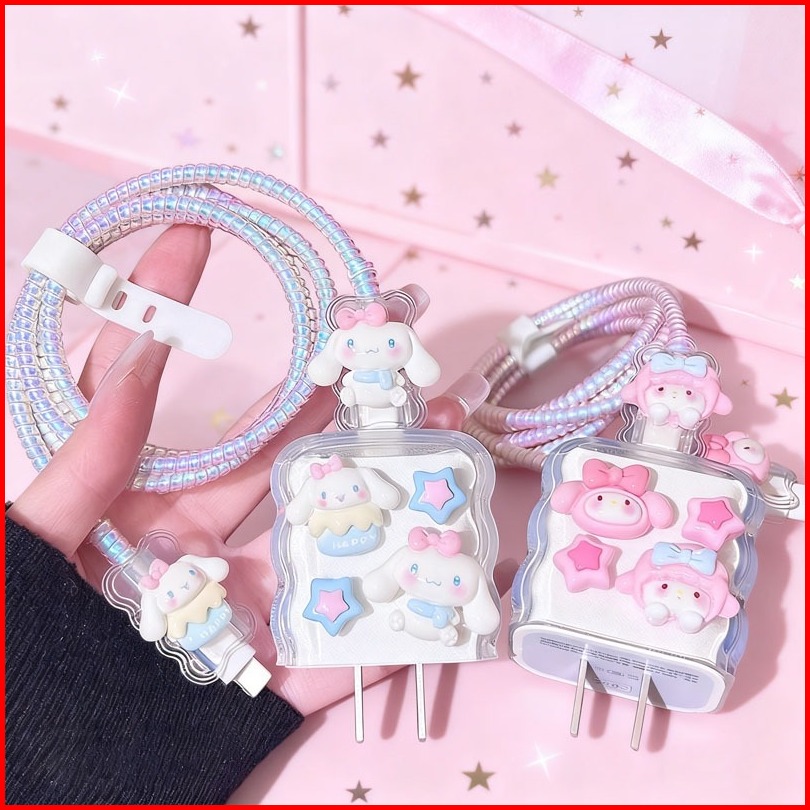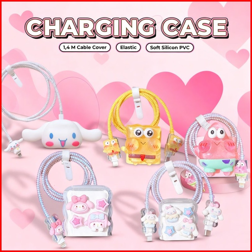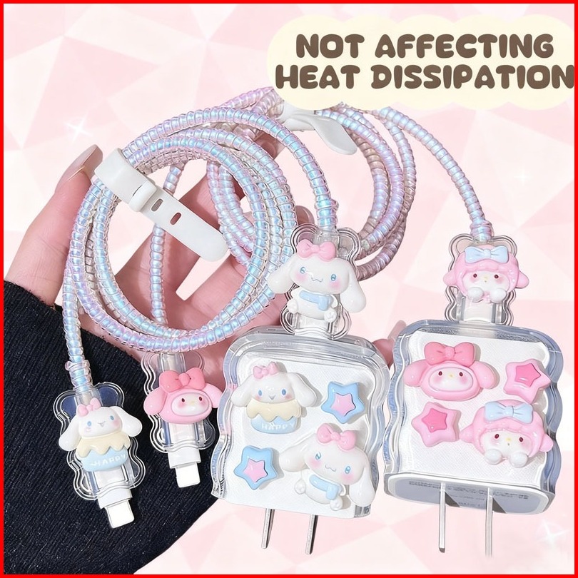 3d Cartoon Silicone Set Charger Head Case Spiral Cable Protector