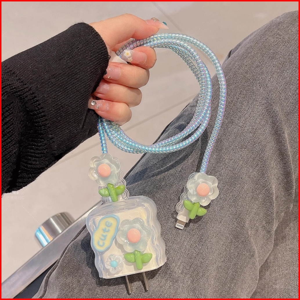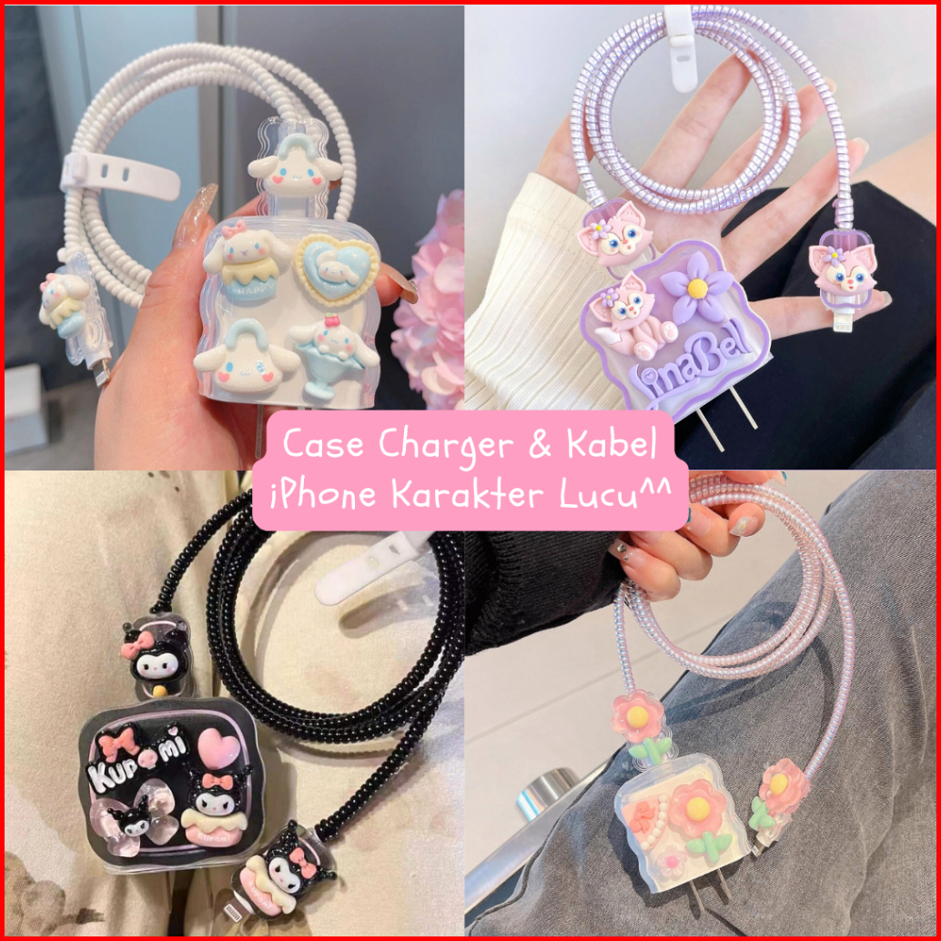 Feclowcase Pelindung Kabel Carger Iphone 18w 20w Set 5 Pcs Paket Patch Cover Kabel Data Kepala Charger Sanrio Disney