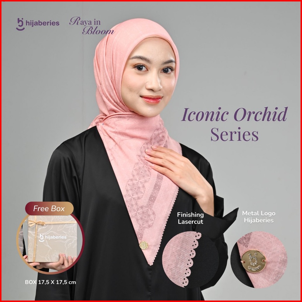 Hijaberies Signature Iconic - Rose Hijab Segiempat Motif With Exclusive Box