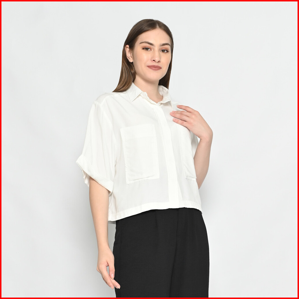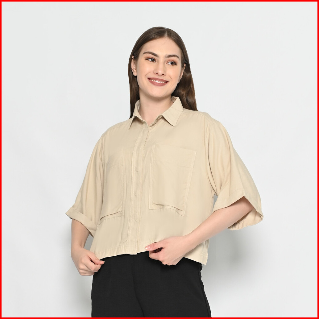 Queentin Kemeja Wanita Crop 0187 Rayon Viscose Polos Lengan Siku 3 4