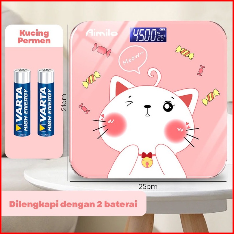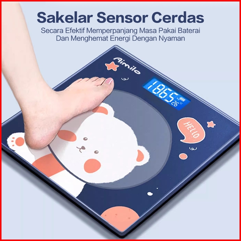 Aimilo - Timbangan Badan Digital Kartun Pengukuran Akurat Timbangan Layar Lcd Berat Max 180kg