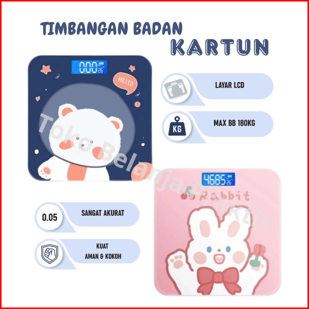 Timbangan Kaca Digital 180kg Dengan Motif Kartun Lucu