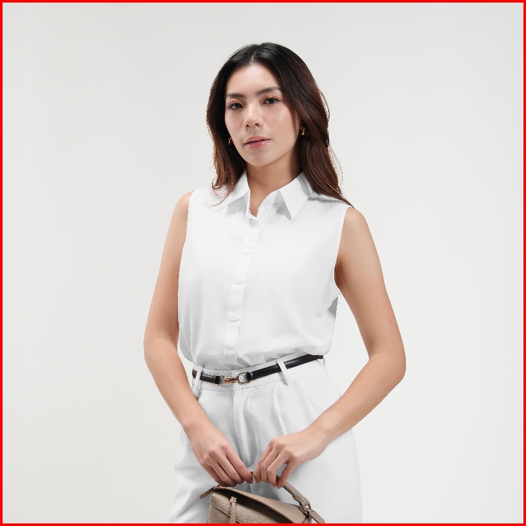 Perfect Date - May Sleeveless Shirt Kemeja Wanita Atasan Kerah Cotton Poplin Top Tanpa Lengan Kutung