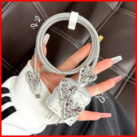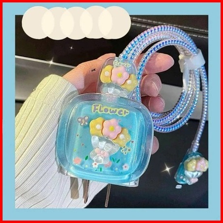 Casing Cute 3d Cute Wavy - 4in1 Set Paket Cover Pelindung Kepala Kabel Charger Spiral Cable Set Protector - Untuk Iphone