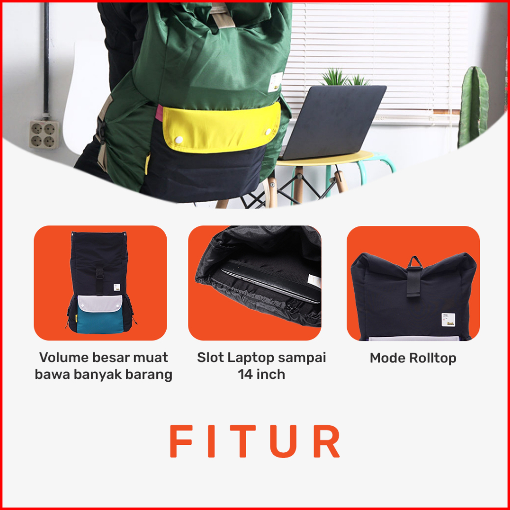 Euck Kobe Rolltop Backpack - Tas Ransel Laptop 15 Inch Waterproof Pria Dan Wanita