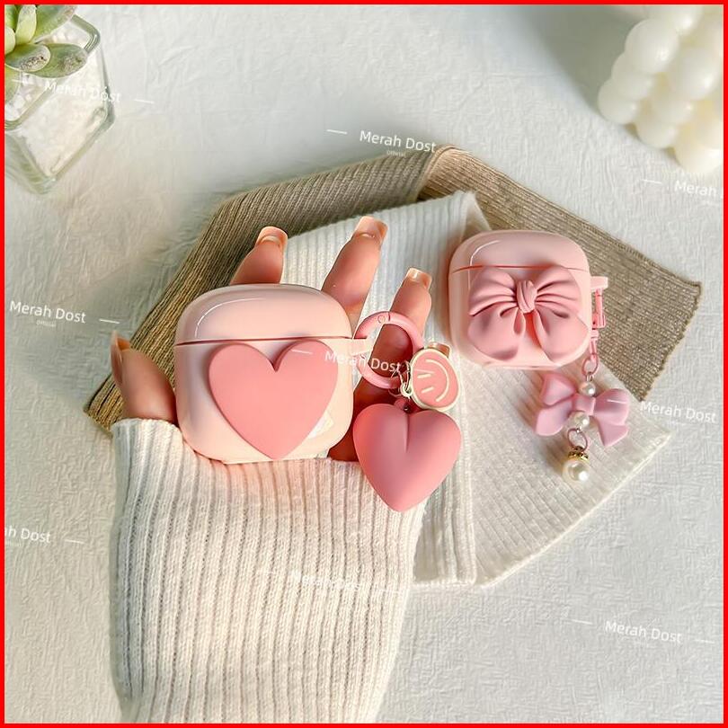 Pelindung Airpods Case Airpods Untuk Apple Airpods 1 2 3 Pro Pro2 Pelindung Earphone Silikon Motif Karton Pita Pink Love