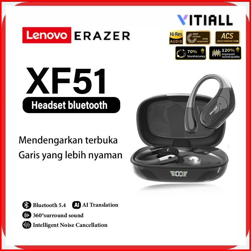 Lenovo Erazer Xf51 Tws Headphone Nirkabel Bluetooth 5.4 Tws Headphone Gaming Konduksi Tulang Terbuka Headphone Peredam B