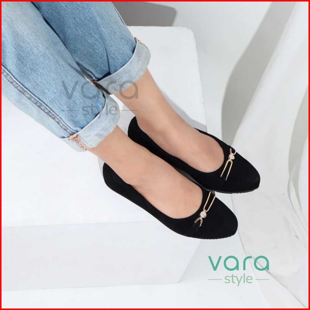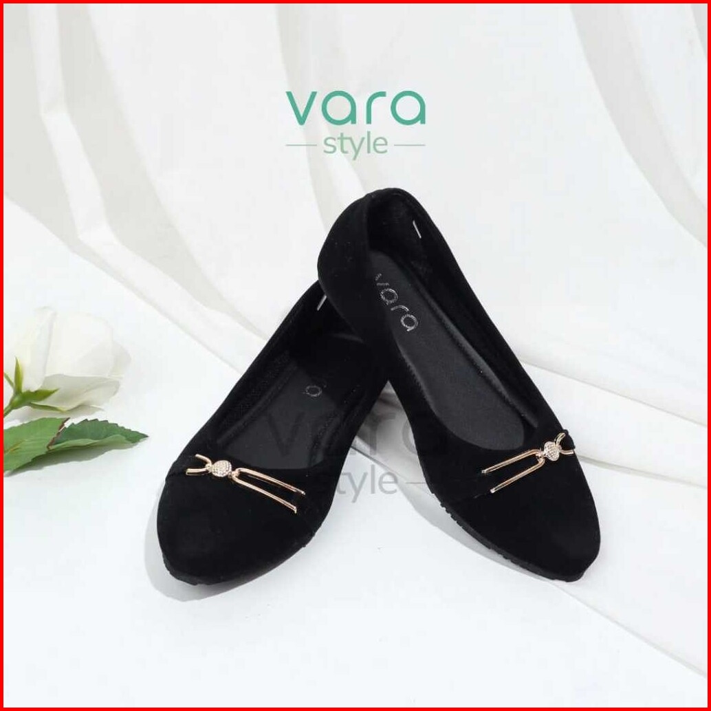 Vara Amira Sepatu Flatshoes Simpel Wanita Hitam Beludru Anti Slip Vr1001