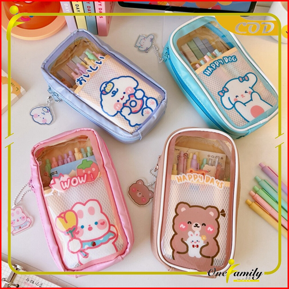 One-a61 Tempat Pensil Anak Transparan Motif Kartun Pencil Case Multifungsi Ala Korea Pouch Serbaguna Tempat Alat Tulis T