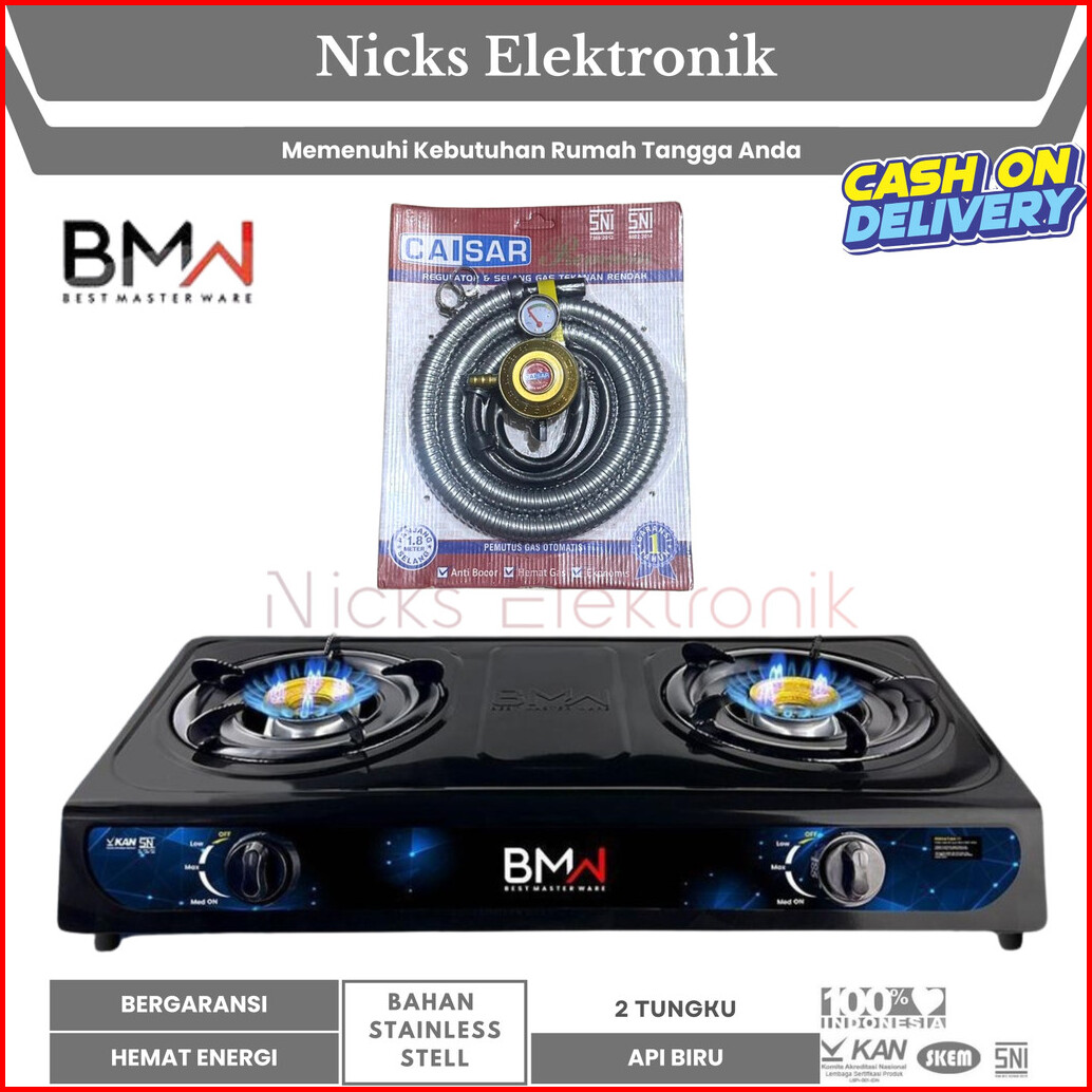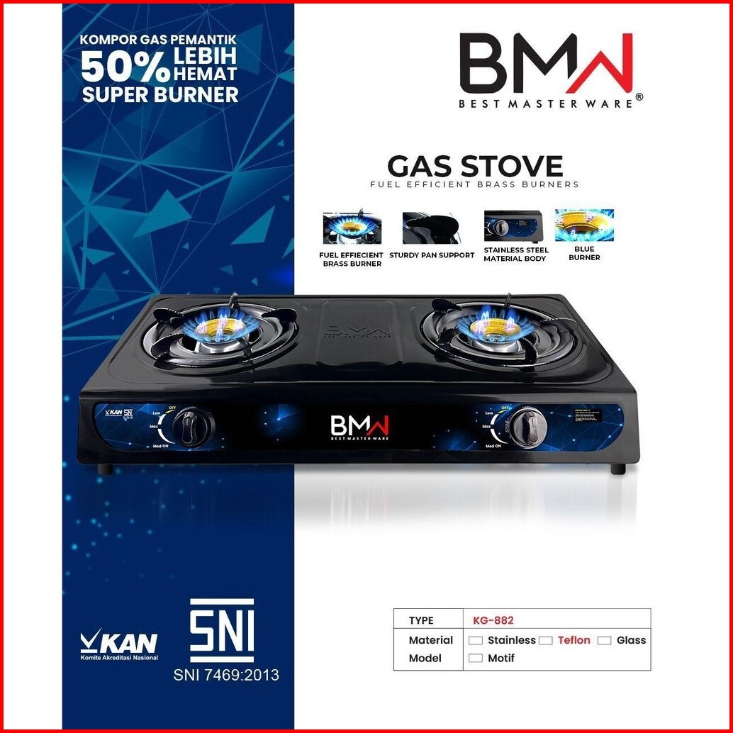 Bmw Kompor Teflon Paket Selang Regulator Kg-882t 2 Tungku Garansi Resmi