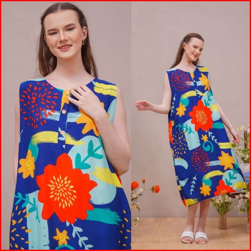 Oriana Homewear Midi Dress Kiandra Series Sizing Daster Ibu Hamil Menyusui Tanpa Lengan