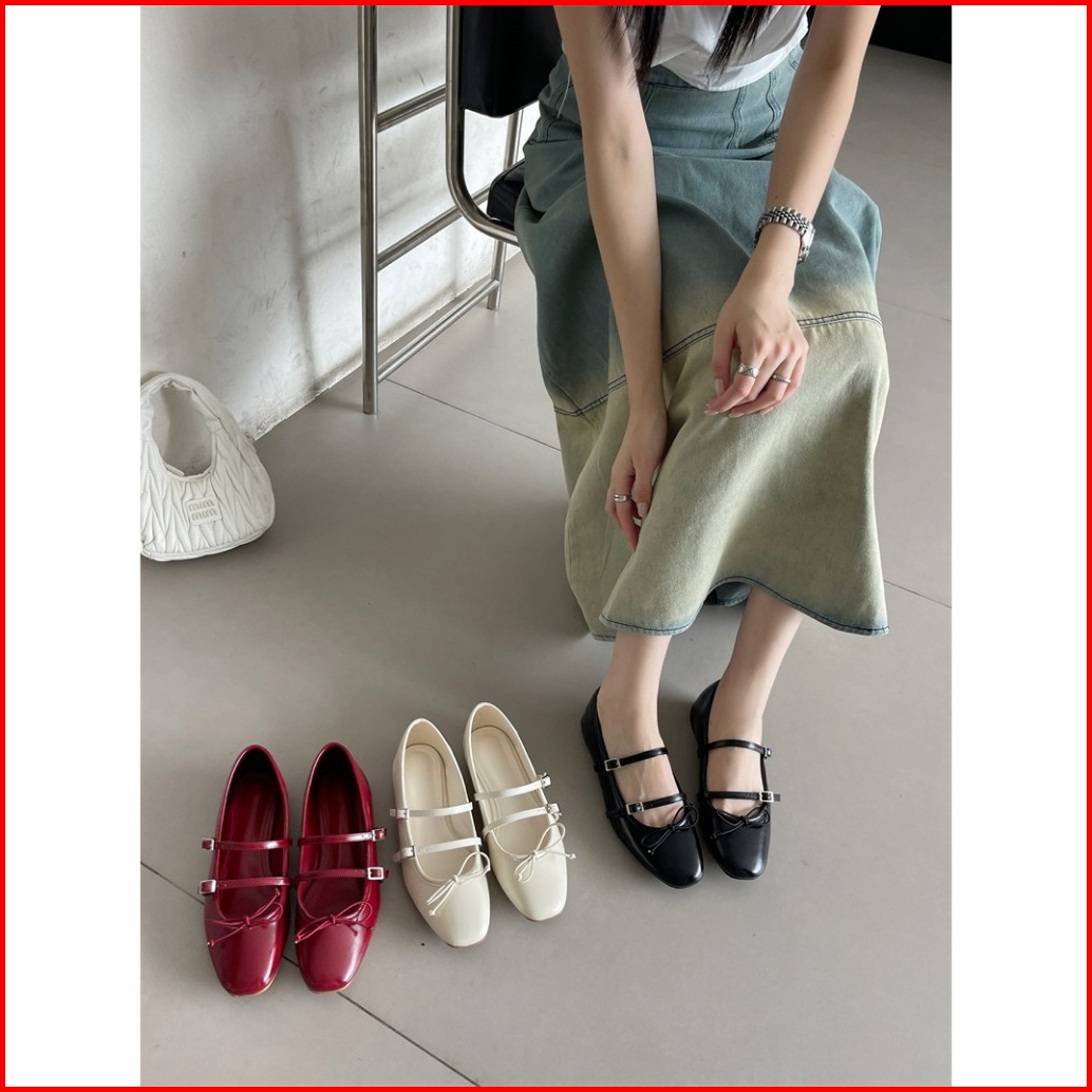 Flatshoes Wanita Sabreena Tali Gesper Dua Pita Polos Terbaru