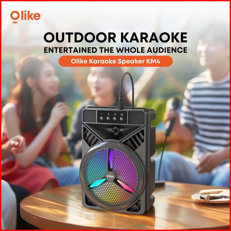 Olike Km4 Speaker Karaoke Bluetooth Portable Wireless Micrphone Set Rgb Led Speaker Mini Full Bass