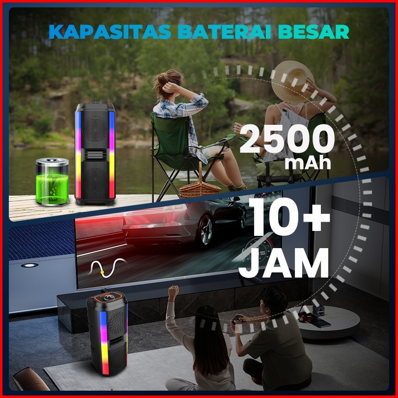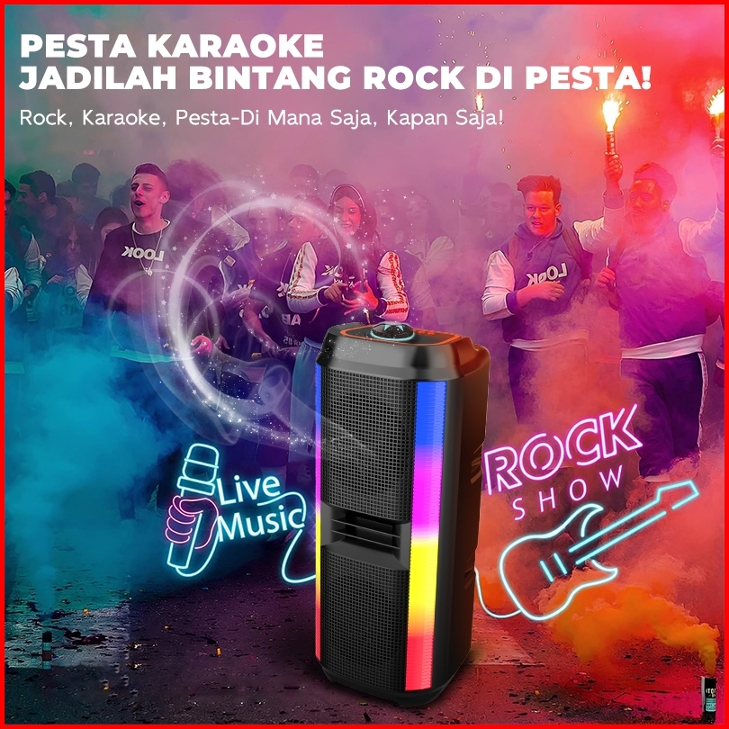 Malket Speaker Bluetooth Karaoke Super Bass Subwoofer 2mic Wireless Usb Fm Aux Rgb Garansi 3 Tahun